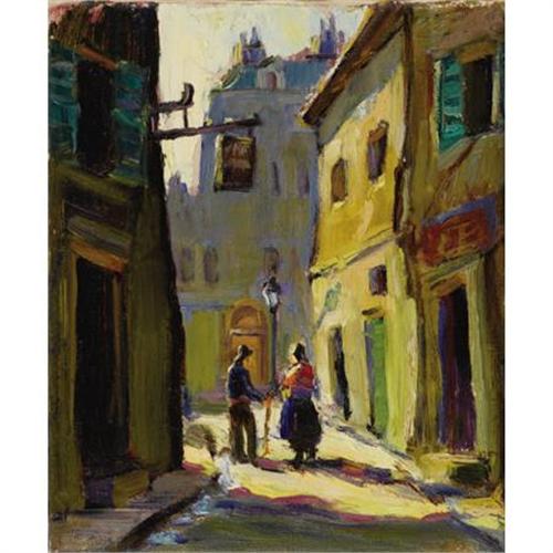 <B>LLOYD GOFF (1908-1982)<BR></B></I>Untitled Paris Street Scene<I>,</B></I> 1928<BR>Oil on canvas<BR>12 x 10 inches (30.5 x 25.4 cm)<BR>Unsigned, accompanied by a certification by the executor of the Lloyd Goff Estate<BR><BR> This light-filled small canvas is replete with confident and bravura brushwork.<BR><BR>Provenance:<BR>Estate of Lloyd Goff<BR><BR><B>Condition Report:</B> Excellent relined condition with minor inpainting. Unframed.<BR><BR><b>Shipping:</b> Requires 3rd Party Shipping (<a target="_blank" href="http://www.heritageauctions.com/common/shipping.php">view shipping information</a>)