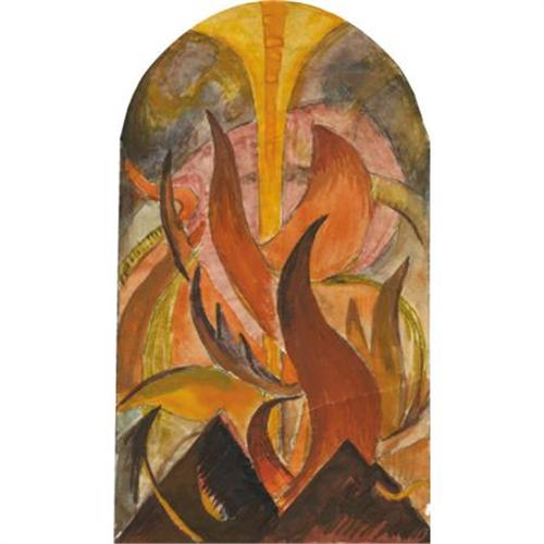 <B>LLOYD GOFF (1908-1982)</B></I><BR>Untitled Mural Study<BR>Watercolor and gouache on paper<BR>7 x 4-1/2 inches (17.8 x 11.4 cm)<BR>Unsigned, accompanied by certification by the executor of the Lloyd Goff Estate<BR><BR> A colorful design for a mural or stained glass window.<B>Condition Report:</B> Repaired tear. Unframed.<BR><BR><b>Shipping:</b> Requires 3rd Party Shipping (<a target="_blank" href="http://www.heritageauctions.com/common/shipping.php">view shipping information</a>)