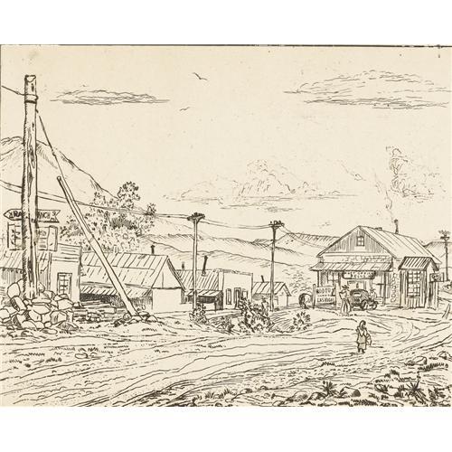 <B>LLOYD GOFF (1908-1982)</B></I><BR><I>Rodeo Las Vegas,</B></I> early 1940s<BR>Etching<BR>7 3/4in. x 9 1/2in.<BR>Unsigned, accompanied by certification by the executor of the Lloyd Goff Estate<BR><BR>A rare etching. This print is inscribed on the margin by the artist: <I>3rd state.</B></I><BR><BR>Provenance:<BR>Estate of Lloyd Goff<BR><BR> <B>Condition Report:</B> Excellent condition. Unframed.<BR><BR><b>Shipping:</b> Requires 3rd Party Shipping (<a target="_blank" href="http://www.heritageauctions.com/common/shipping.php">view shipping information</a>)