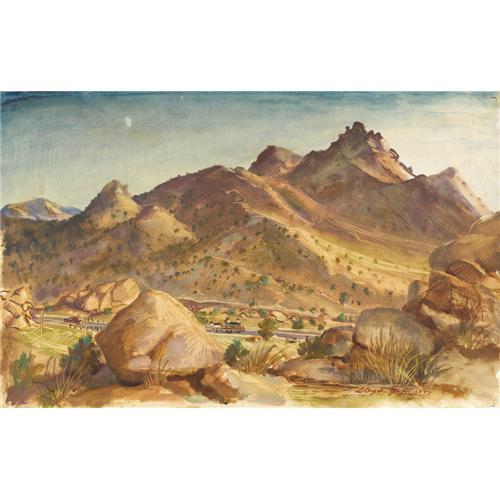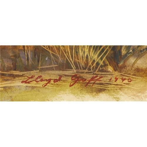 <B>LLOYD GOFF (1908-1982)</B></I><BR>Untitled New Mexico Highway, 1940<BR>Tempera<BR>13 3/4in. x 22in.<BR>Signed and dated lower right<BR><BR>This exceptional tempera dated 1940, shows a highway through the New Mexico mountains. It is very likely the road depicted is the famous Route 66, which was the main east-west highway from Texas to California.<BR><BR>Provenance:<BR>Estate of Lloyd Goff<BR><BR> <B>Condition Report:</B> Excellent condition. Unframed.<BR><BR><b>Shipping:</b> Requires 3rd Party Shipping (<a target="_blank" href="http://www.heritageauctions.com/common/shipping.php">view shipping information</a>)
