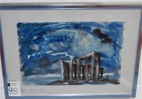 LLOYD LOZES GOFF 14"x20" watercolor the ruins signed lower right <BR>condition: excellent, stains to matting