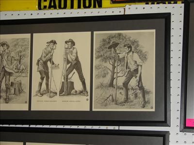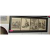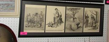 4 ABRAHAM LINCOLN SURVEYING PRINTS IN FRAME. PRINTS BY LLOYD OSTENDORF. YEARS ON PRINTS INCLUDE: 76 (ARTIST SIGNED), 79, 67, AND 73. NICELY FRAMED AND MATTED. MEASURES 15 X 39. AS SHOWN. VIEW PICTURE FOR DETAIL.