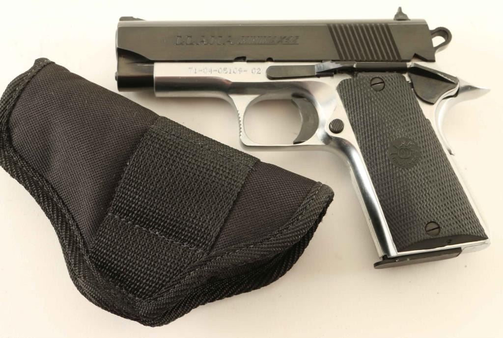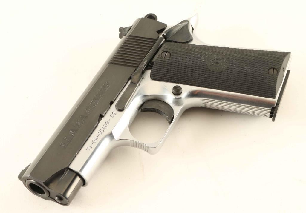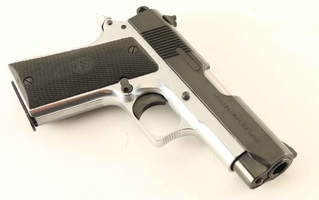 Semi-automatic pistol. 98% Blued finish on slide, and furniture trigger. Stainless steel frame. Black hard rubber grips. Bore appears excellent/bright. #31/2" barrel. Action is tight. Comes with one 6-rd magazine. Comes with a black nylon holster. NRA condition- very Good. Modern Firearm.