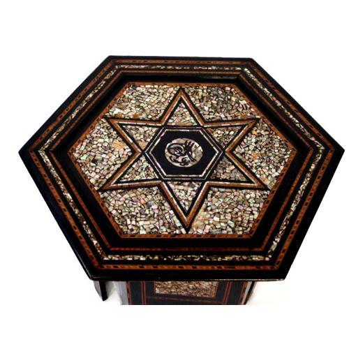 Wonderful 19th Century Indian Table Black Lacquered With Inlay With Fabulous Mother of Pearl