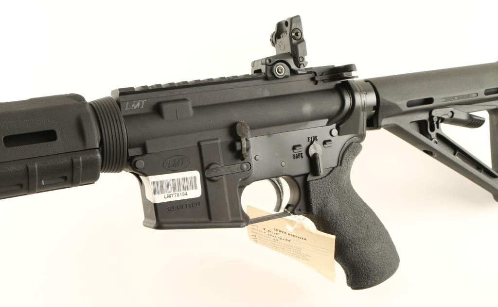 'Lewis Machine & Tool Co.' Top of the line AR platform semi-automatic rifle chambered in 5.56mm Nato. Features a matte black finish, cryogenically treated 16" chrome lined 1:7 M4 barrel, birdcage flash hider, A2 front sight with bayonet lug, flat top receiver, Magpul Mbus adjustable flip up rear sight, Fail Zero M16 BCG, no magazine, shell deflector, forward assist, dust cover, sling swivels, Magpul Moe carbine length handguard, six position Magpul Moe buttstock and LMT rubber over-molded finger groove pistol grip. Rifle shows very little to no wear. Action is crisp, bore is pristine and stocks are fine. Condition is as new in box. ***Modern Firearm***