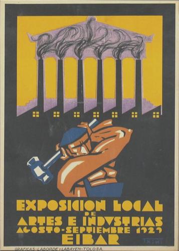 TXIKI. EXPOSICIÓN LOCAL DE ARTES E INDUSTRIAS EIBAR. 1929. 50x36cm. (19,5x14,5in.). Litografía. A-.