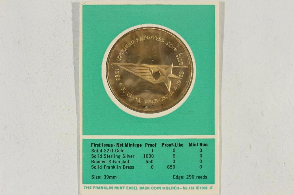 COMMEMORATIVE COIN / MEDAL MINTED BY THE FRANKLIN MINT IN SOLID FRANKLIN BRASS, (PF LIKE), ORIGINAL MINT PACKAGING