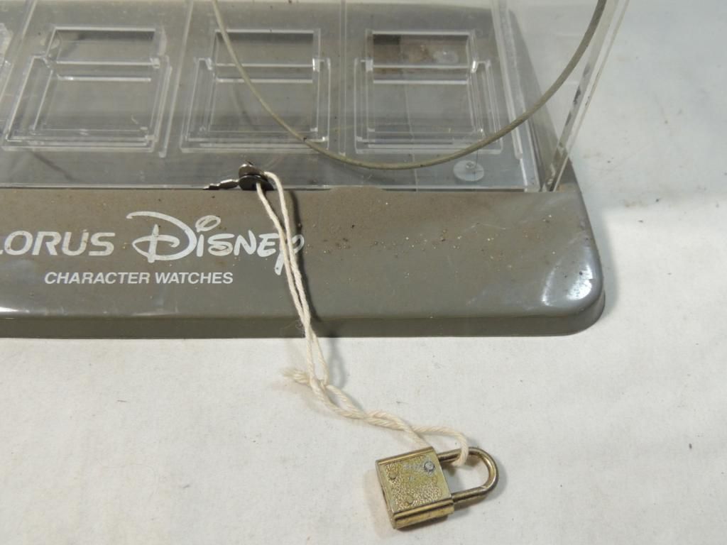 LORUS DISNEY WATCH DISPLAY CASE. PLASTIC PEXIGLASS COUNTER TOP DISPLAY AS SHOWN SEE PHOTO FOR MORE DETAILS.