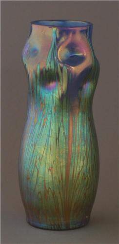 LOETZ ART GLASS VASE blue ground with multi-tone oil spot decoration, unsigned 9 1/4" high ,