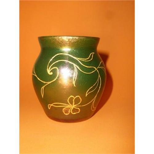 WE PRESENT TO YOU A SUPERB EXAMPLE OF A LOETZ VASE WITH THE RARE DECOR OF ASTRAA, (A FINISH OF HONEY COLORED OIL SPOTS) AND AN APPLIED GOLD GILT SHOWING A FLORAL DESIGN OVER. THERE ARE PEACOCK COLORS OF BLUE,PURPLE,GREEN,YELLOW,GOLD AND COMBINATIONS DANCING AROUND IN THE NATURAL LIGHT BRINGING ON LIFE AS THOUGH IT WERE ALIVE ITSELF.UNBELIEVABLE BEAUTY THAT JUST JUMPS OUT AT YOU. THREE AND A QUARTER INCH HIGH WITH AN OPENING OF TWO AND A HALF DIAMETER AND A POLISHED PONTIL THATS JUST UNDER TWO INCHES DIAMETER. THIS VASE WILL CONTINUE TO GO UP IN VALUE YEAR AFTER YEAR, INTERNATIONAL SHIPPING IS QUOTED AT TIME OF PURCHASE. ACTUAL SHIPPING AND INS. ONLY, NO ADDED PKG. OR HANDLING FEES.A PIECE WAS JUST SHIPPED TO JAPAN, THE COST WAS $29.94. U.S.MAIL.