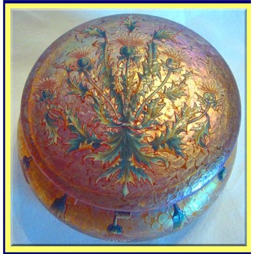 <tr><td>Title:LOETZ IRIDESCENT GLASS BOX w ENAMEL THISTLE</td></tr>