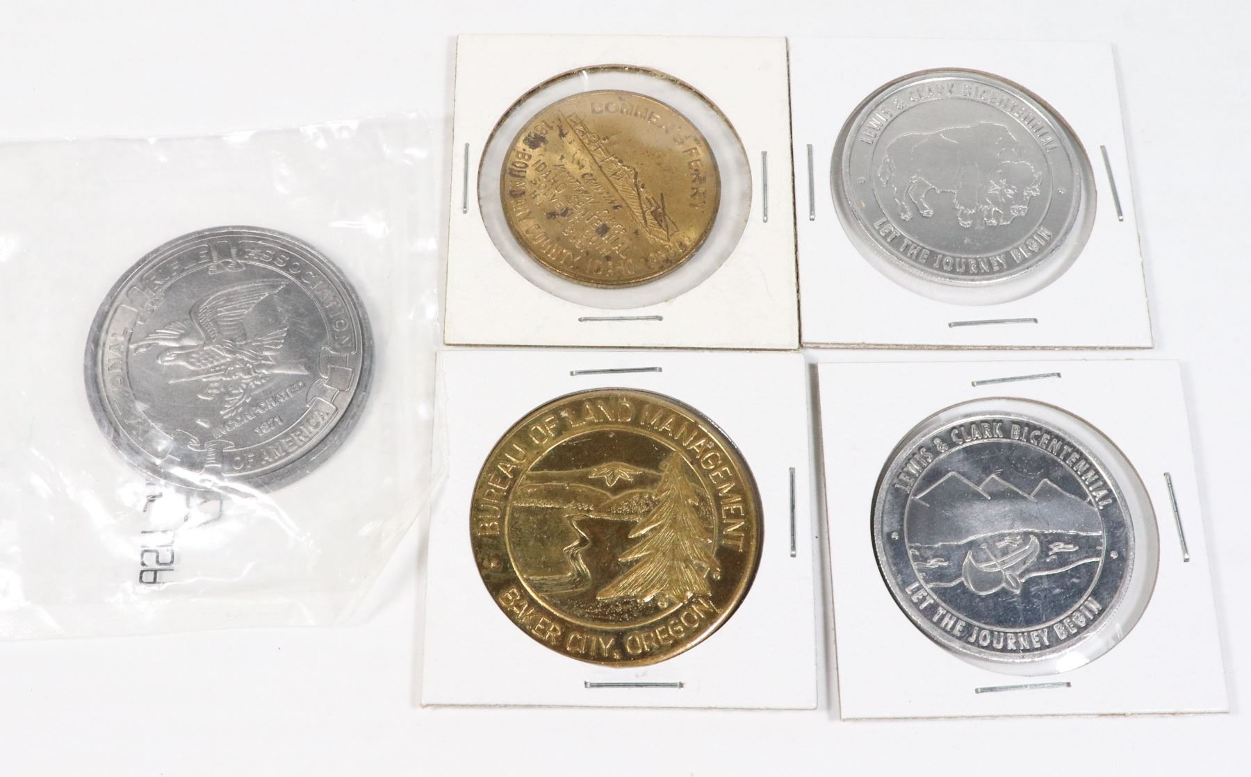 2 AMERICAN COIN TOKENS BONNERS FERRY 2 CONOCO OIL COMPANY LEWIS CLARK AMERICAN MILLITARY M 1903 RIFLE SERIES***ITEM(S) LOCATED IN LETHBRIDGE ALBERTA, FREE TRANSPORT TO OUR EDMONTON OFFICE AVAILABLE. WORLDWIDE SHIPPING IS AVAILABLE***