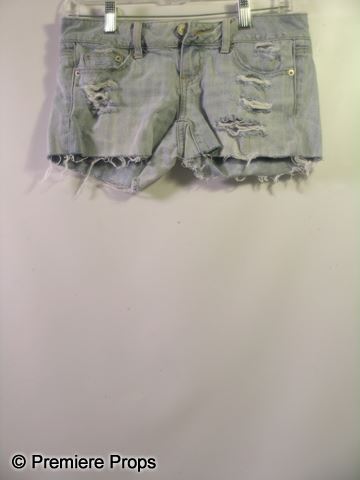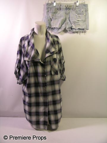 Lola (Miley Cyrus) screen worn, blue and white plaid 'Vince' shirt, (size S) and white denim 'American Eagle' shorts. (size 0)