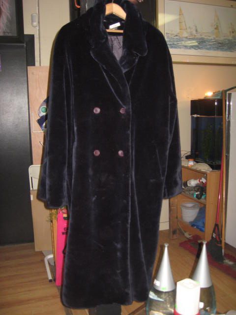 LONG BLACK/BLUE COAT - "APART" - FAUX FUR