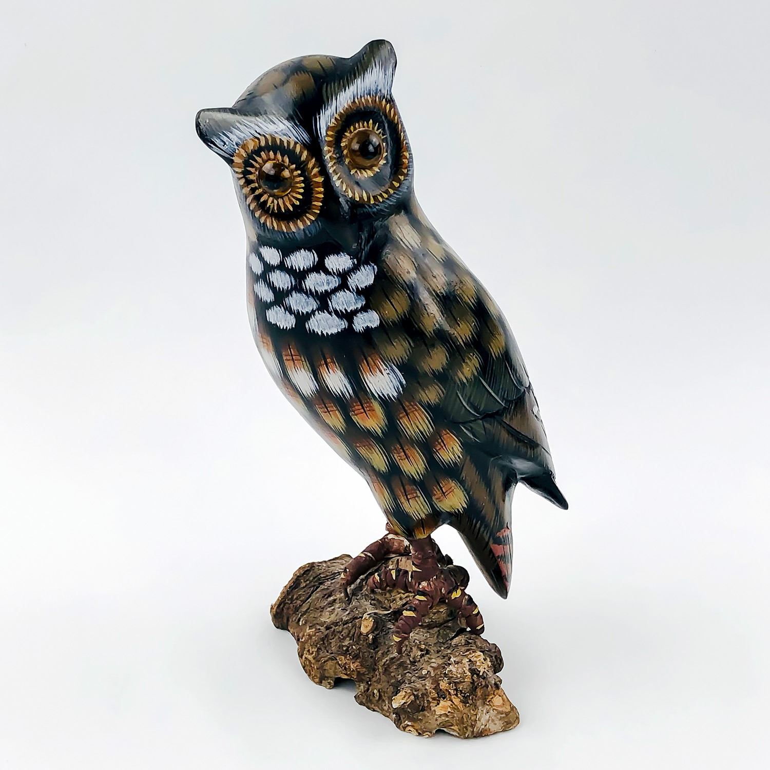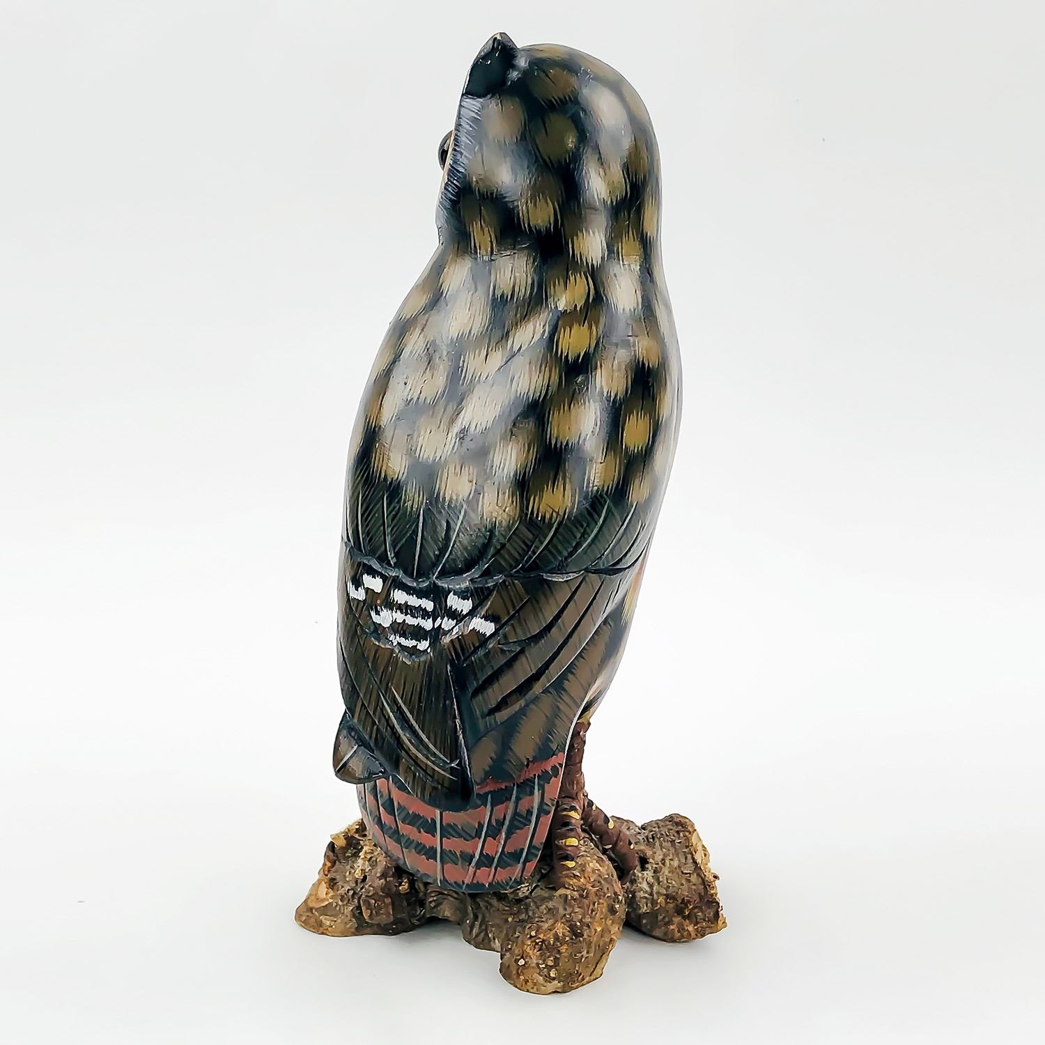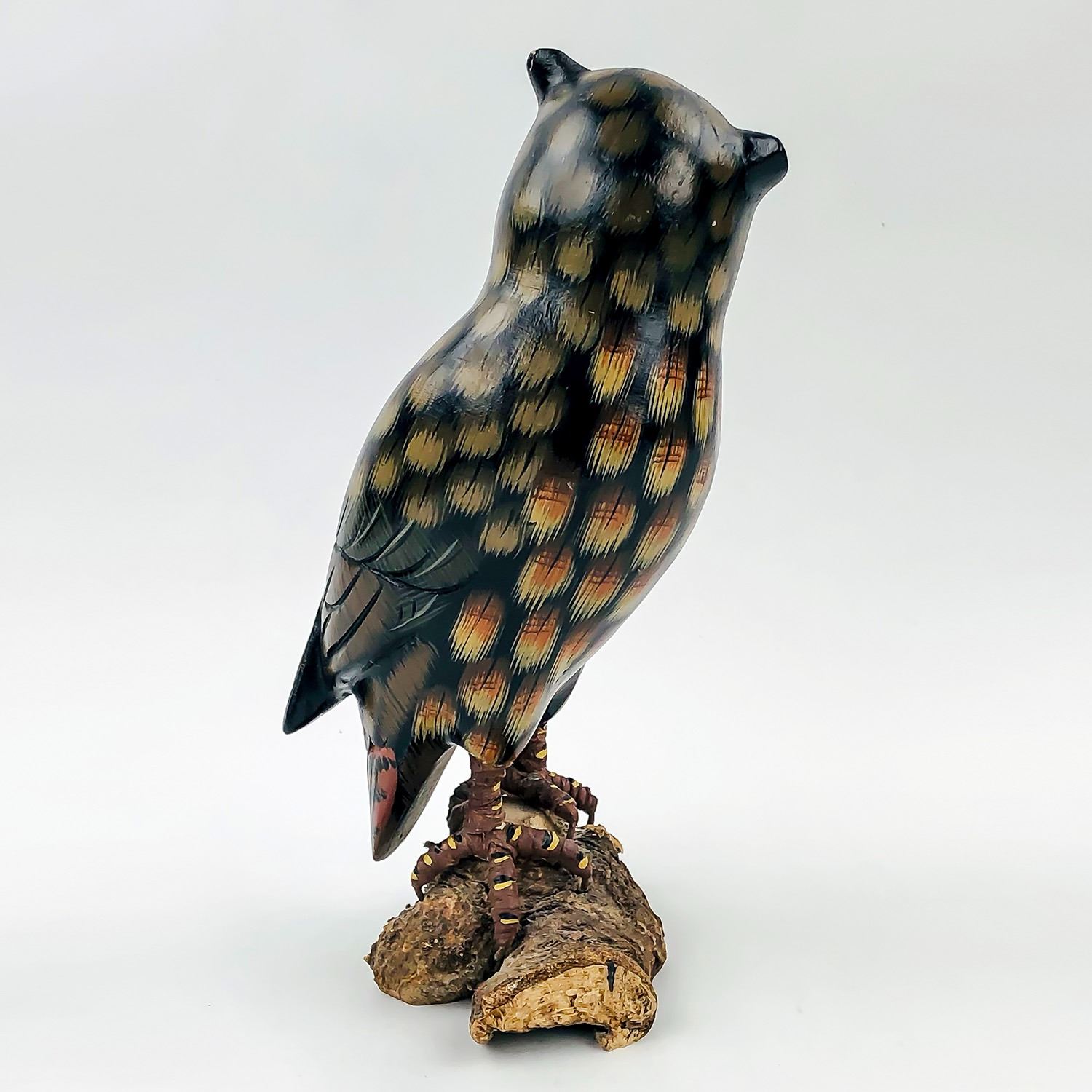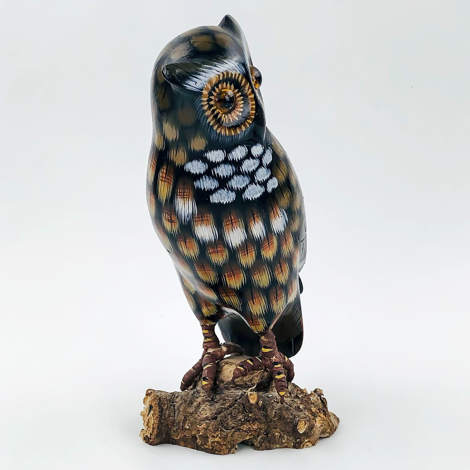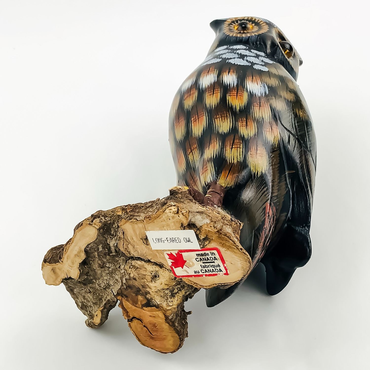 #9207 - HANDMADE OWL WOOD CARVING, MADE IN CANADA. UNKNOWN ARTIST, MEASURES: 8.5” (21.5 CM) TALL, 4.25” (11 CM) WIDE BASE,***ITEM(S) LOCATED IN LETHBRIDGE ALBERTA. ALL ITEMS IN THIS AUCTION QUALIFY FOR OUR FREE TRANSPORT TO EDMONTON SERVICE. WORLDWIDE SHIPPING AVAILABLE