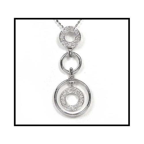This artistic 14K solid white gold pendant is 31mm (17/32") long. The largest circle is 13mm (1/2") in diameter, and the