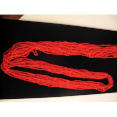 Long draping unconnected strand of ruby carnival beads at be worn free, draped twice, knotted in the middle etc.