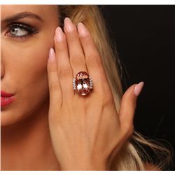 One electronically tested 14KT rose gold ladies cast diamond ring. The ring features several rose gold curvatures supported by diagonally set diamond