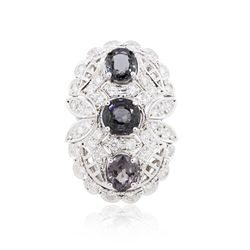 One polished, stamped, and electronically tested solid 14KT White Gold ring mounted with: 3 genuine spinel center stones weighing 5.92 carats and 44 g