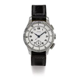 A STAINLESS STEEL STOPPABLE CENTER-SECONDS WRISTWATCH WITH ROTATING INSERT