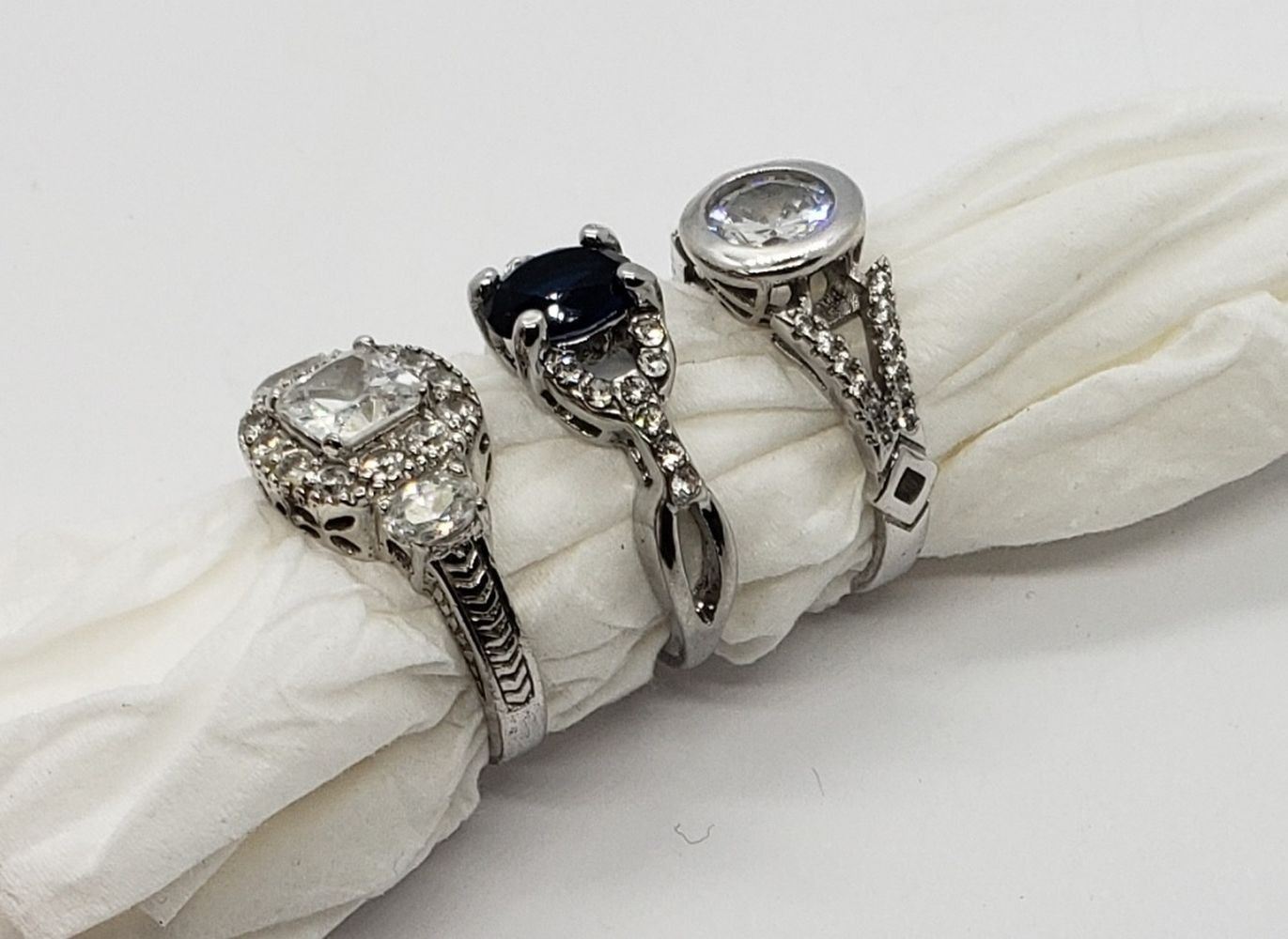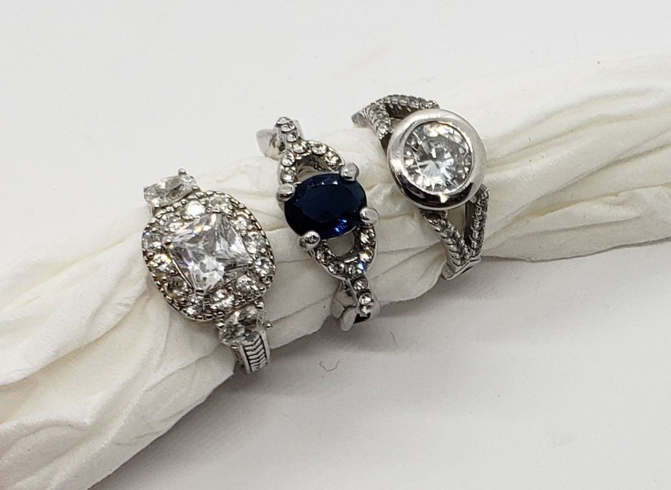 (1)WITH DEEP BLUE CENTER STONES. ALL SIZES 6. TOTAL 7.1 DWT