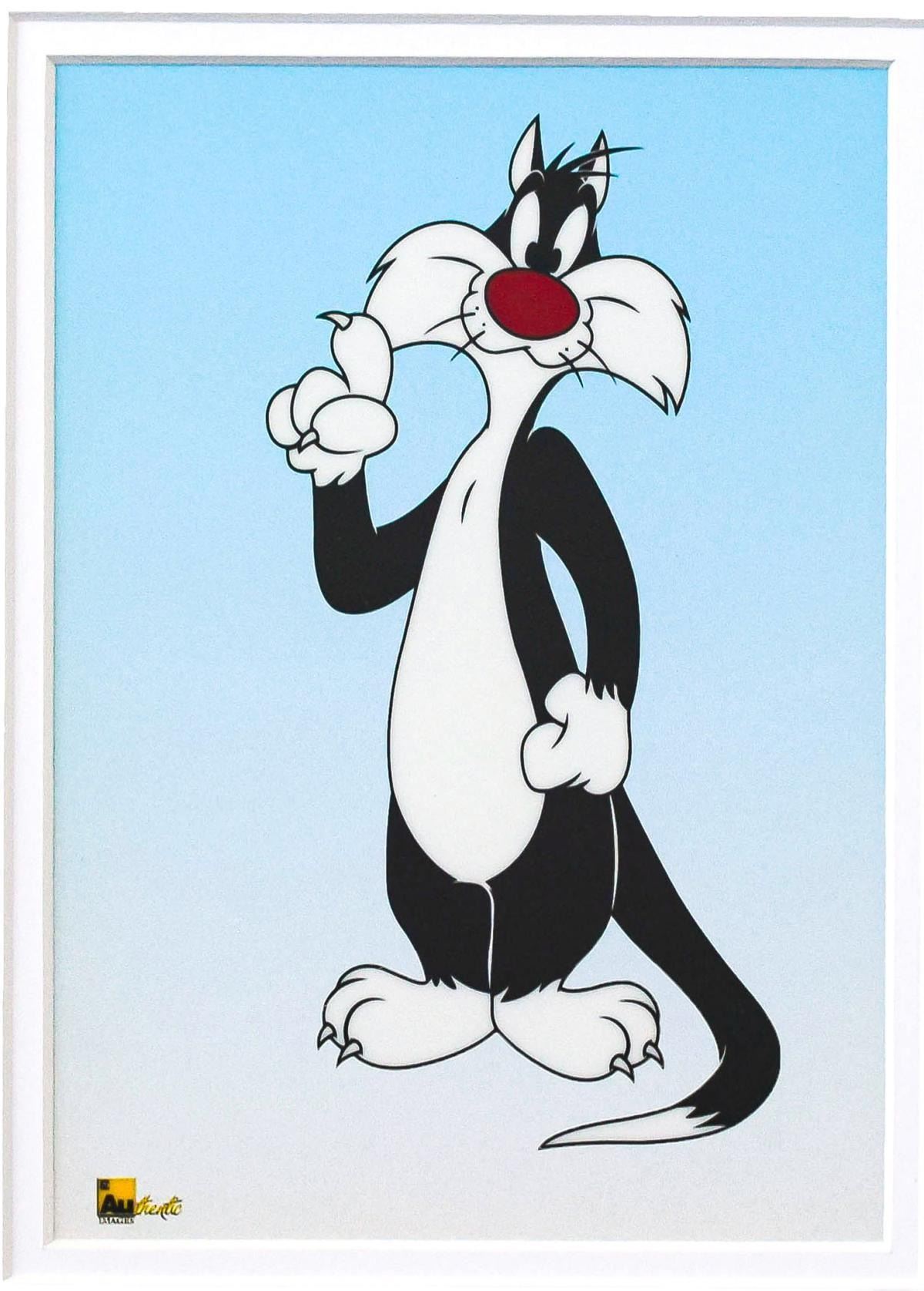 Artist: LOONEY TUNES. Medium: Sericel. Title: Sylvester. Size (Unframed): 8" x 6". Size (Framed): 16" x 14". Additional: This heartwarming image of one of Warner Bros. most lovable characters is perfect for the seasoned collector, or to be hung on the wall of a child's room! "Sylvester" is a limited edition licensed sericel by Looney Tunes and Authentic Images. Includes Certificate of Authenticity!. Reference# 15602.