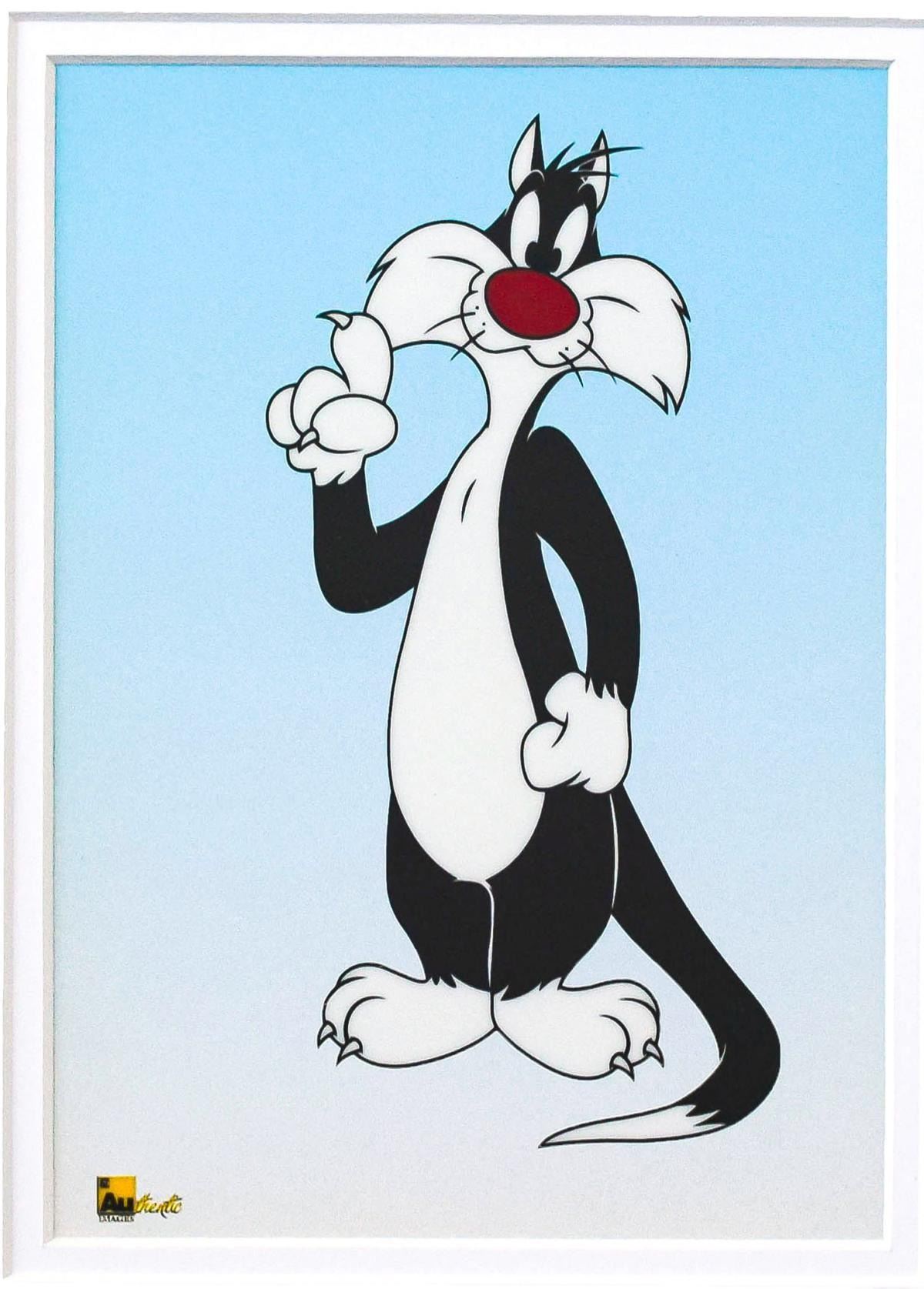 Artist: LOONEY TUNES. Medium: Sericel. Title: Sylvester. Size (Unframed): 8" x 6". Measures approx. (Framed): 16" x 14". Additional: This heartwarming image of one of Warner Bros. most lovable characters is perfect for the seasoned collector, or to be hung on the wall of a child's room! "Sylvester" is a limited edition licensed sericel by Looney Tunes and Authentic Images. Includes Certificate of Authenticity!. Reference# 15602.