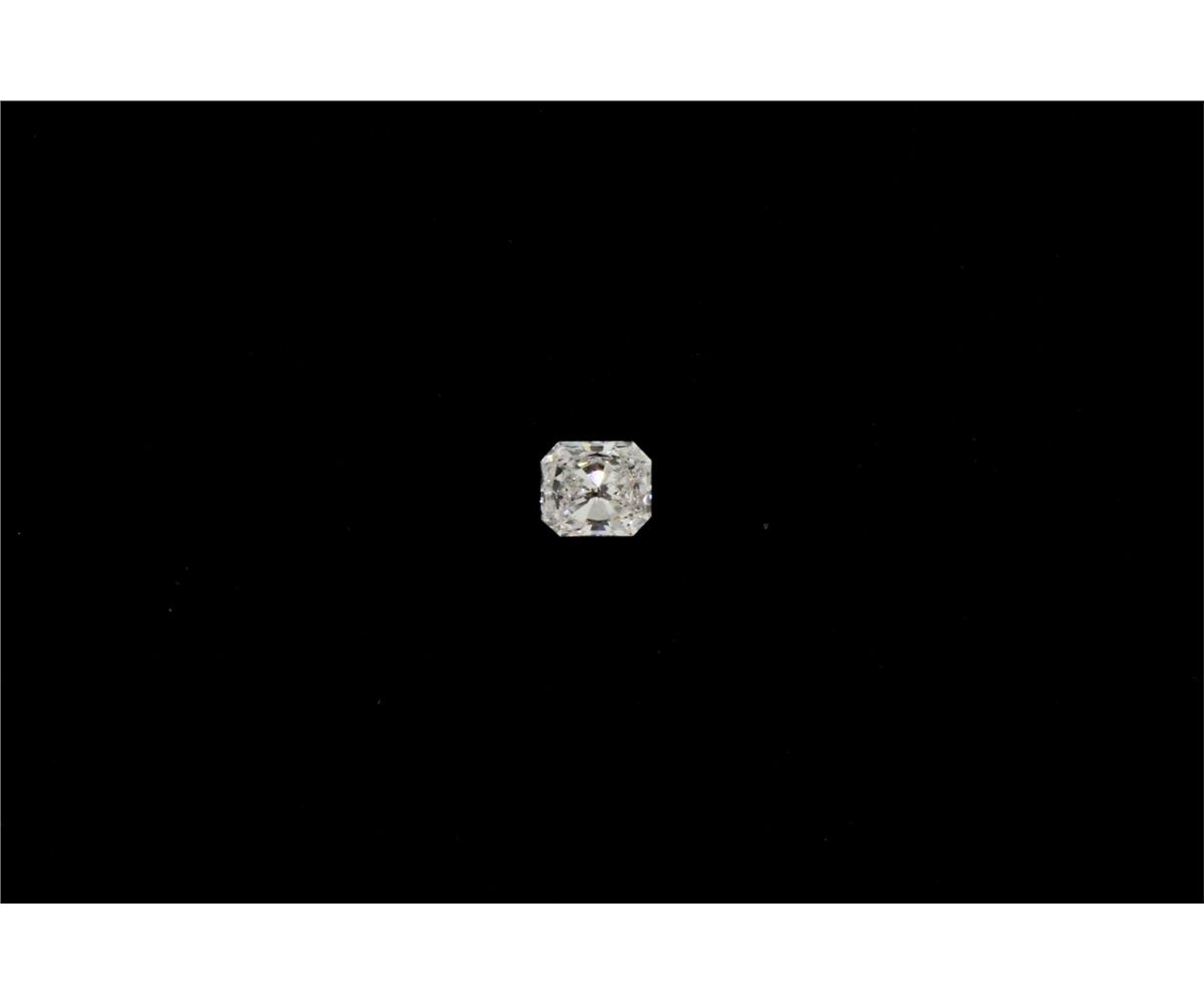 LOOSE DIAMOND: [1] 0.978 carat radiant cut diamond; 6.59mm x 5.74mm x 3.38mm; Good cut, E color, VS2 clarity; inscribed "GIA 14215782".