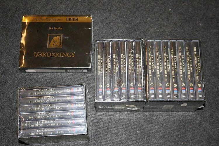 LORD OF THE RINGS - 3 x complete and unabridged audio tape boxsets still sealed (Fellowship of The Ring, The Two Towers & The Return of The King) together with BBC radio collection of 13 gold CDs and 1 cd of theme and incidental music (sealed).