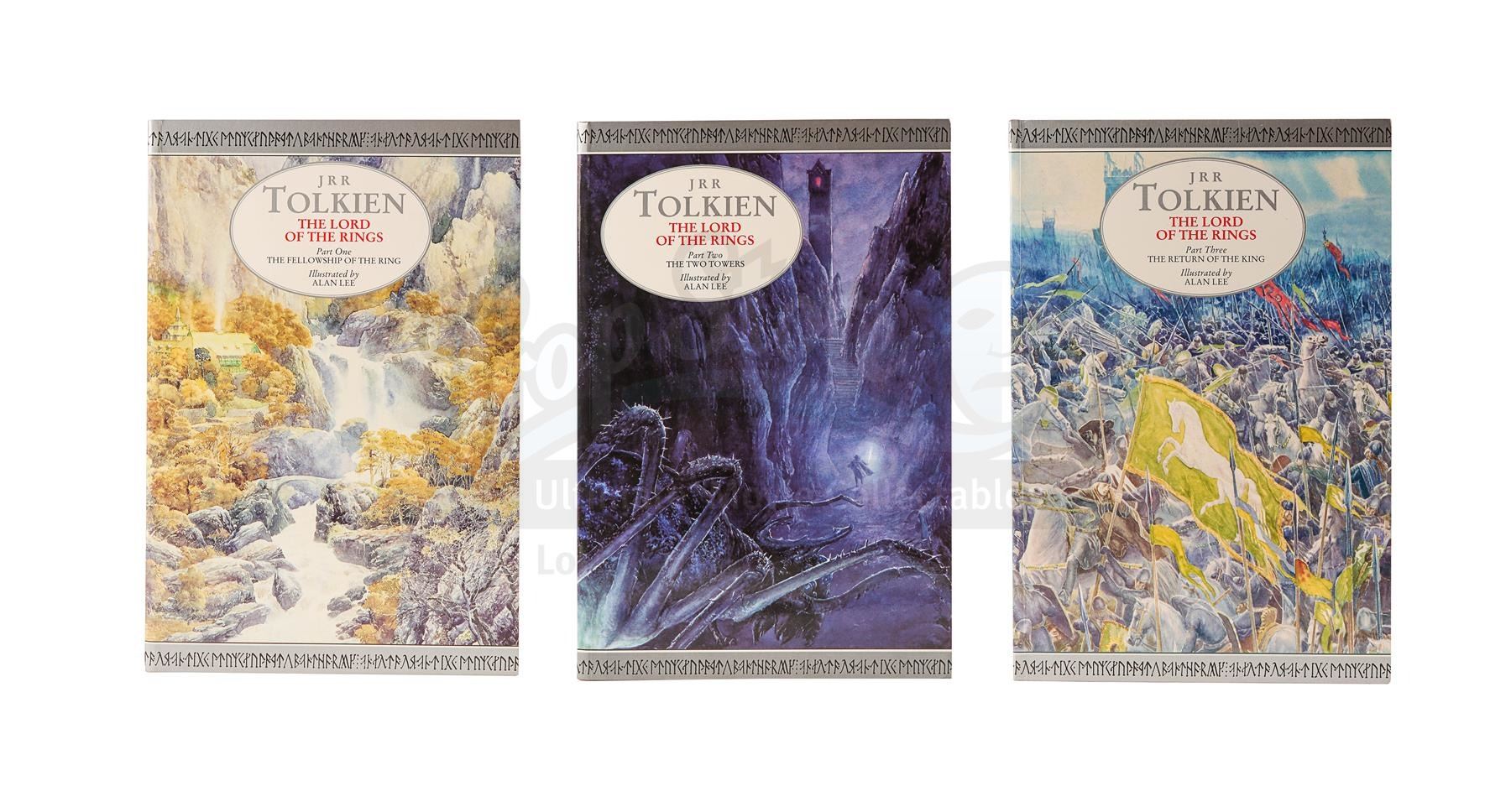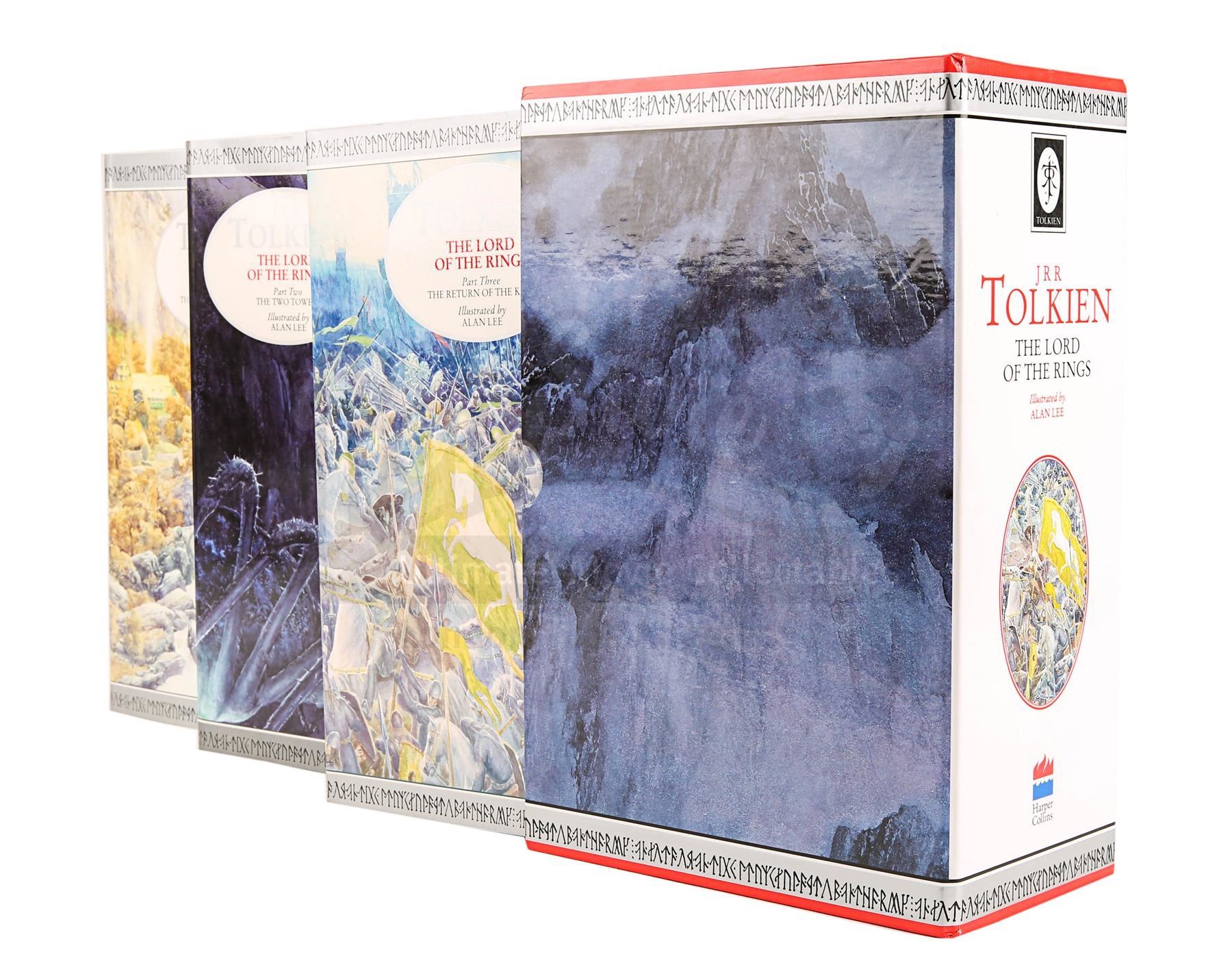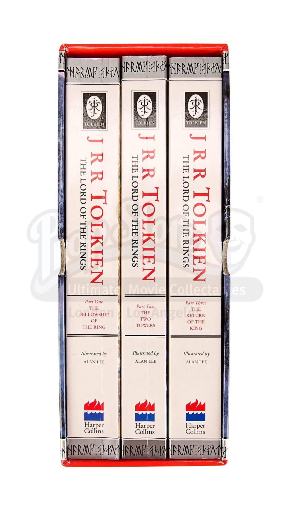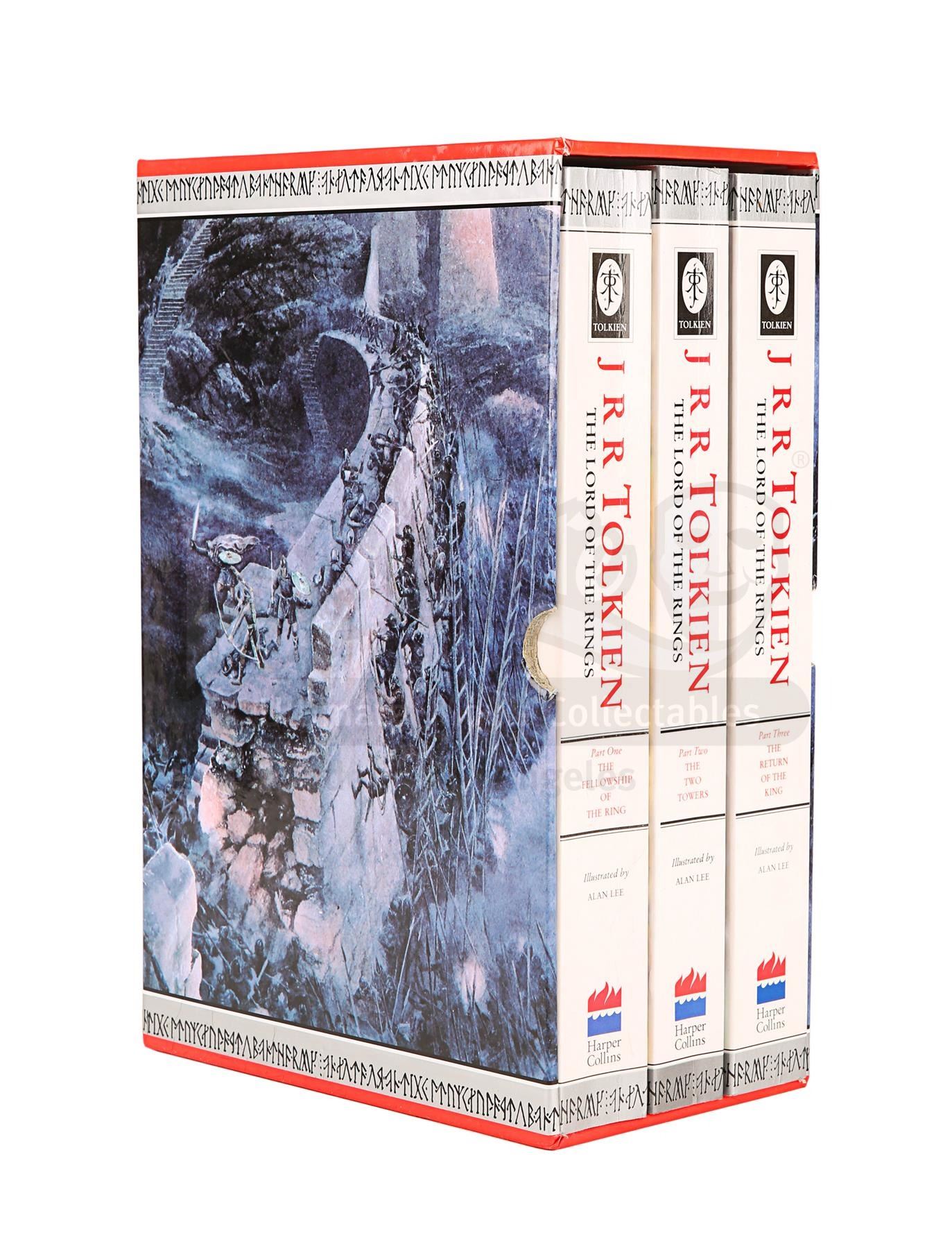 The box set of J.R.R. Tolkien's epic novel trilogy The Lord of the Rings, hand-illustrated and autographed by Alan Lee.