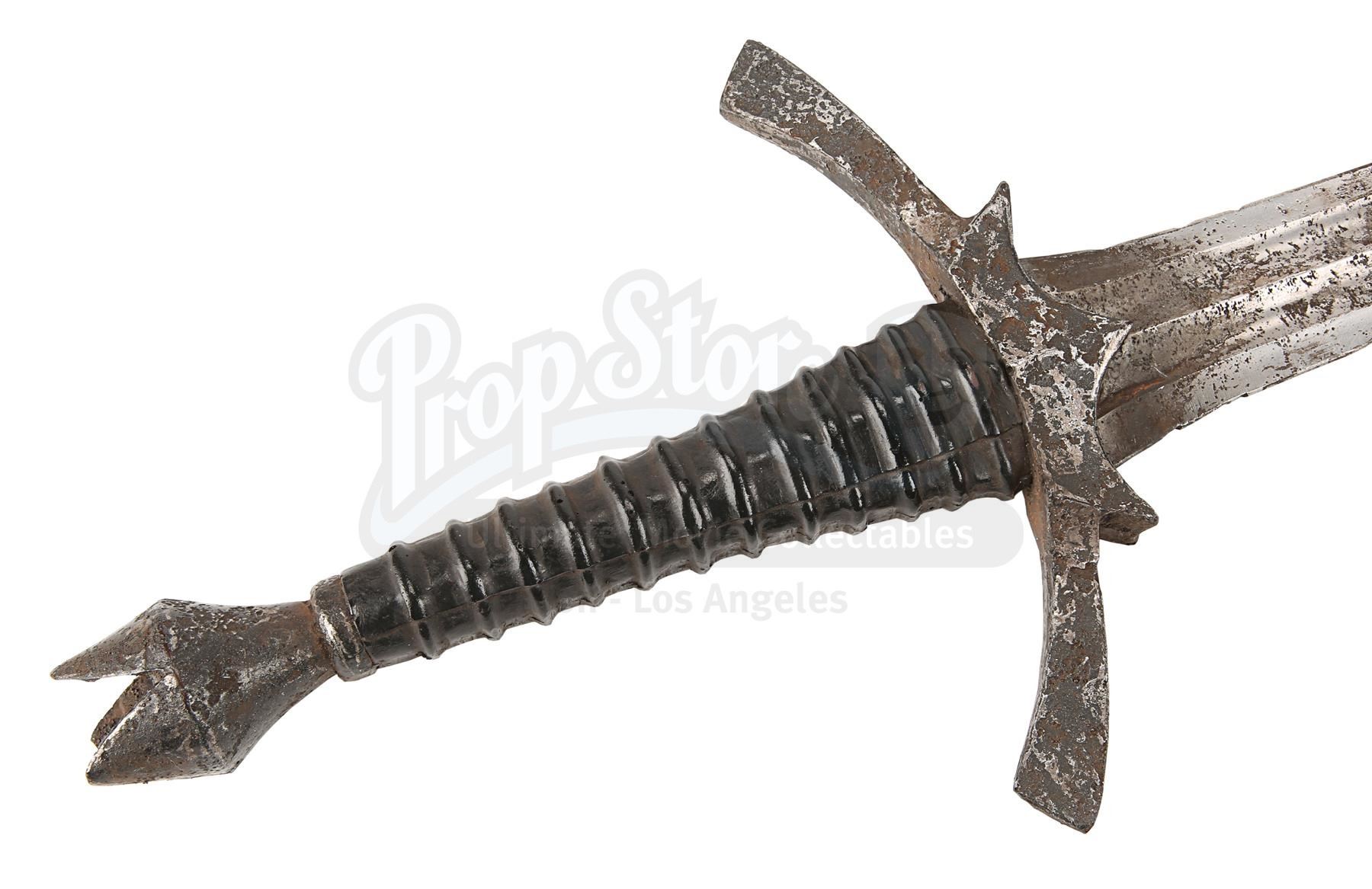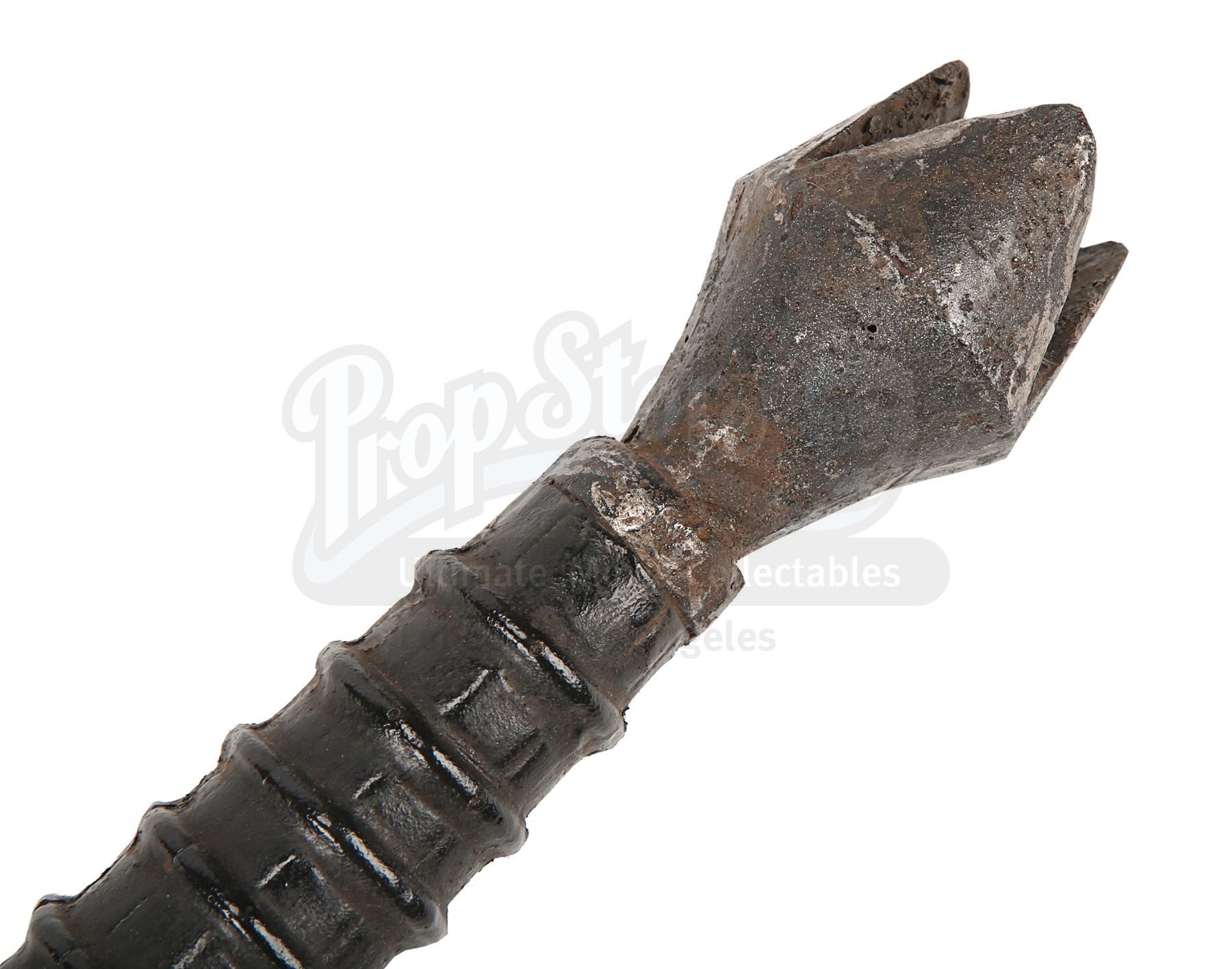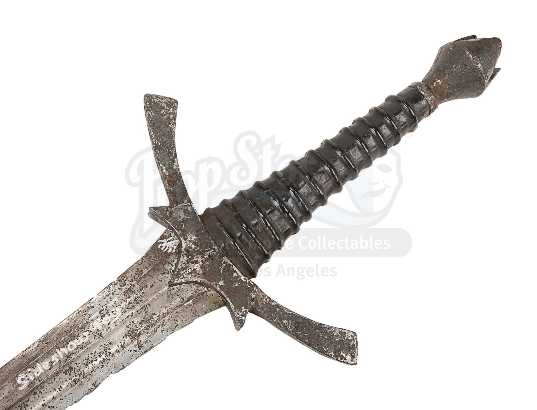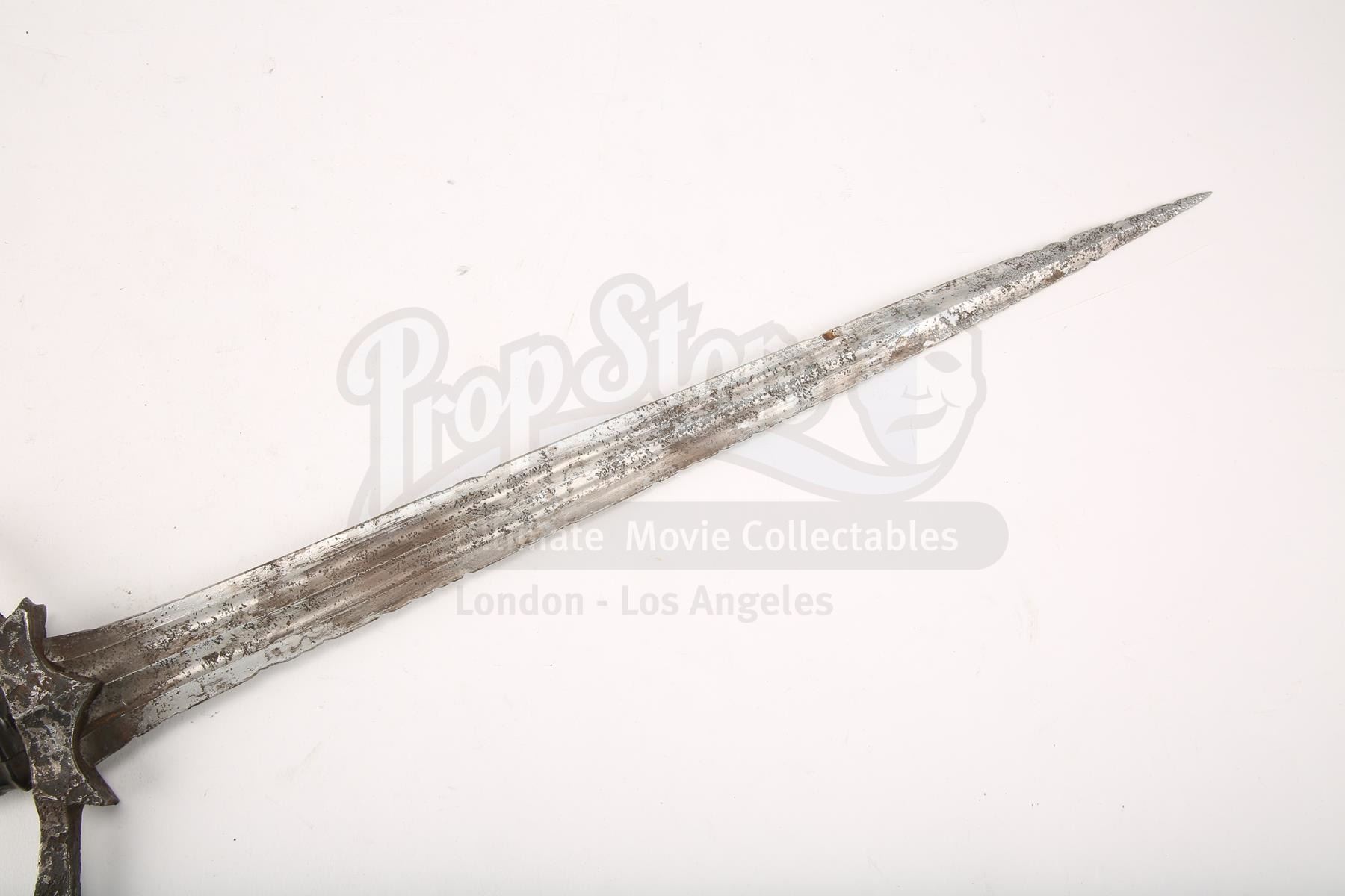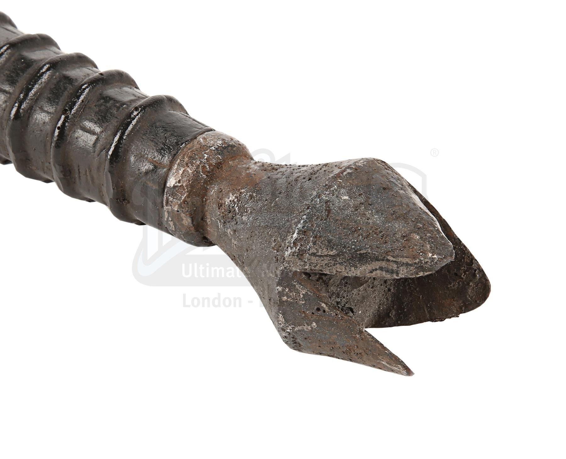 Constructed by the world-renowned Weta Workshop, lauded for its achievements in designing and constructing props that were faithful to Tolkien's writing, this prop dagger features a jagged aluminium blade affixed to a ribbed resin handle with a pointed cross guard and spiked pommel. The dagger has been weathered in shades of faux silver and brown, giving it the appearance of rusted iron, and is one of a small number of principal-character Lord of the Rings pieces in private hands today.