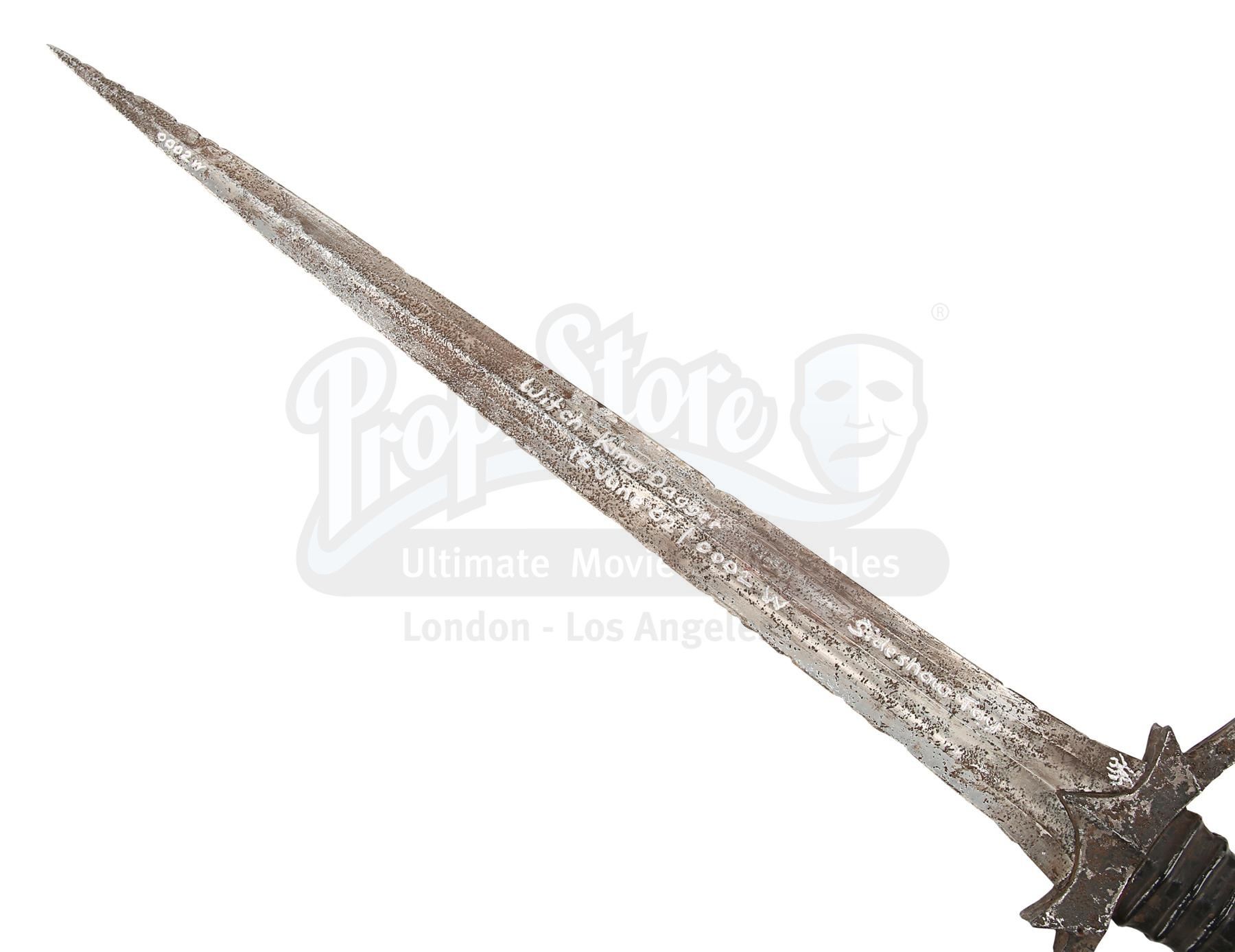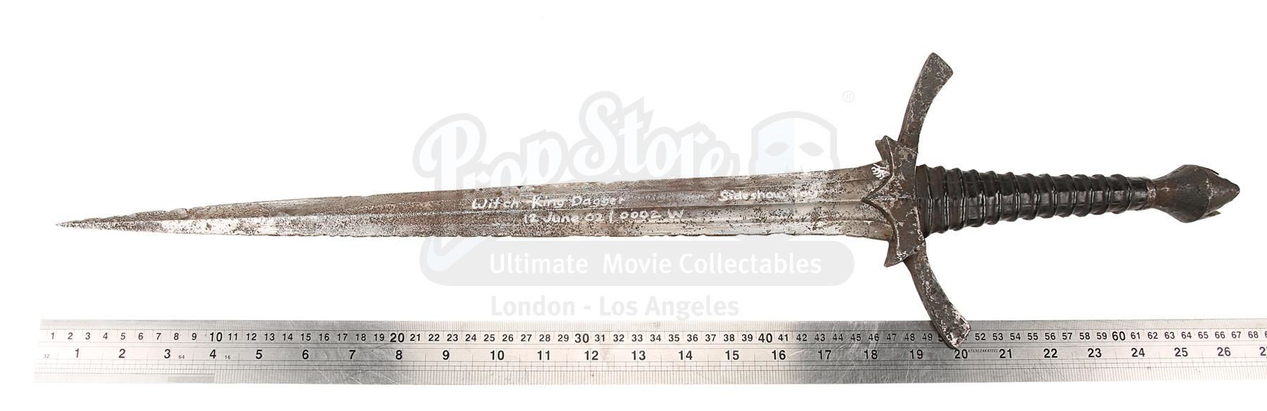 The Witch-King of Angmar's (Brent McIntyre) dagger from Peter Jackson's adaptation of J.R.R. Tolkien's fantasy epic The Lord of the Rings: The Fellowship of the Ring. The Witch-King used his cursed Morgul dagger to stab Frodo (Elijah Wood) as he and his hobbit friends hid from the Nazgûl. When Frodo put on the One Ring to try and escape, the Witch-King was able to see him, poisoning him with his cursed blade.