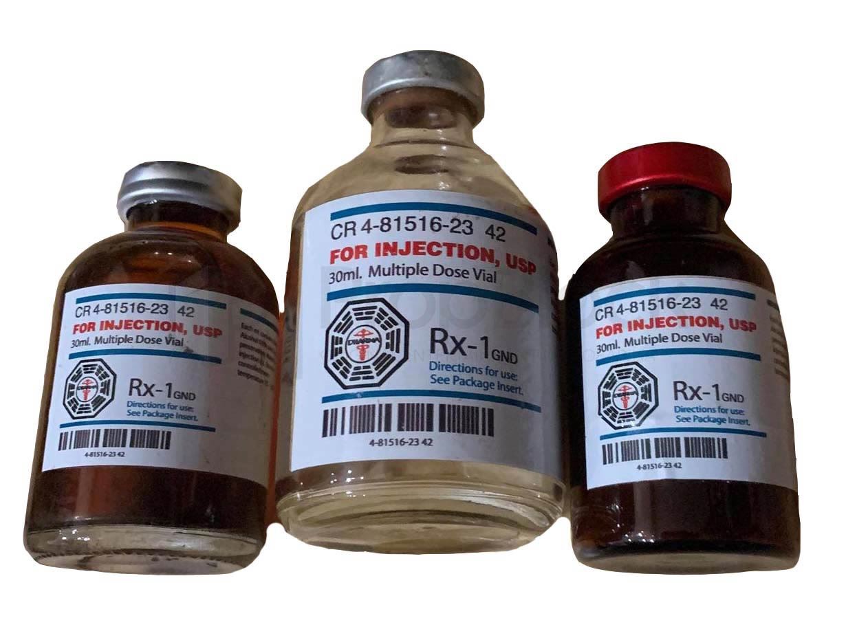 Medical Dharma vials used in the production of the ABC hit series LOST. The survivors of a plane crash are forced to work together in order to survive on a seemingly deserted tropical island. This set of glass vials were used by the Dharma Imitative group on the island and can be seen in the various Dharma facilities in the show. This piece remains in excellent, production used condition.