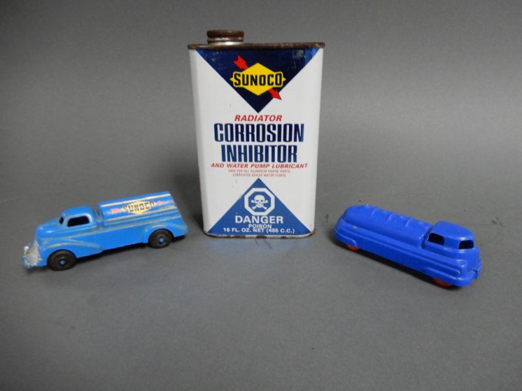 LOT 0F 3 SUNOCO COLLECTIBLES RADIATOR CORROSION INHIBITOR 16 OZ CAN - RELIABLE PLASTIC TANKER - MANOIL TANKER MADE IN U.S.A. LOCATION: LOWER LEFT