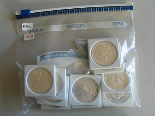 LOT, (10) 1 OZ SILVER COINS & KENNEDY HALF