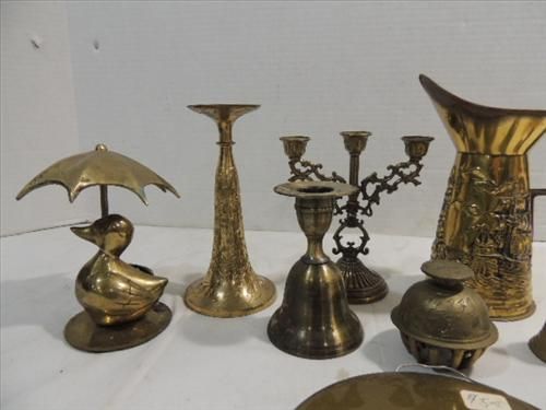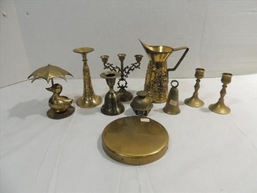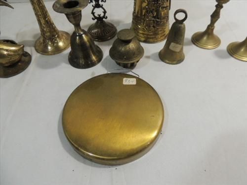 LOT 10 ALL VINTAGE BRASS CANDLE HOLDERS, BELLS &