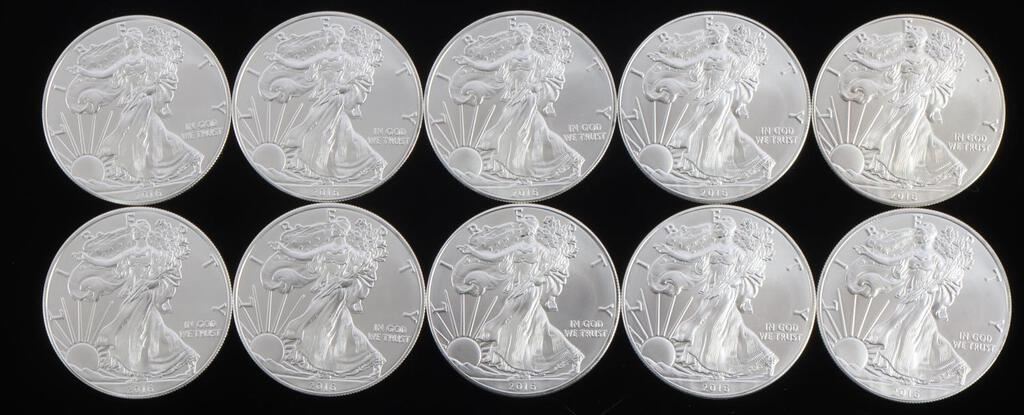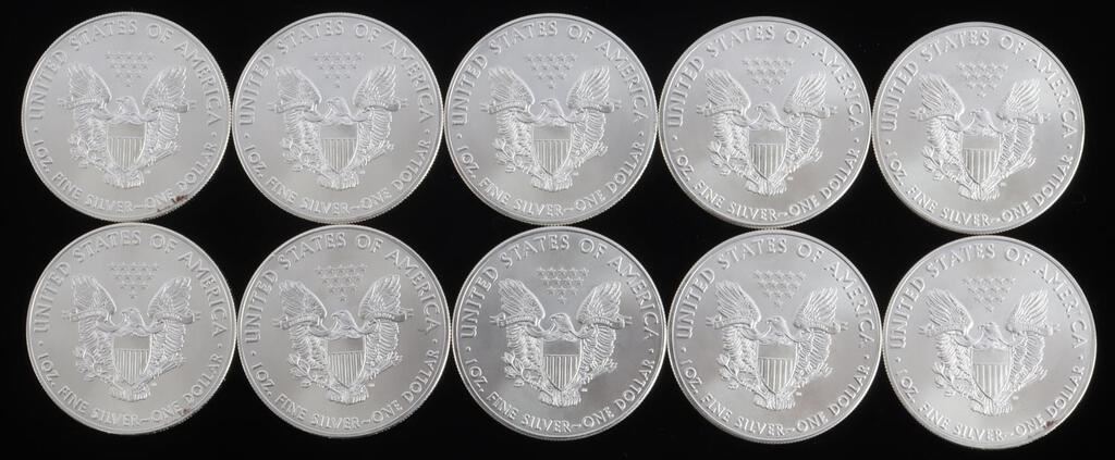 LOT 10 AMERICAN EAGLE 1 OZ SILVER DOLLAR COINS