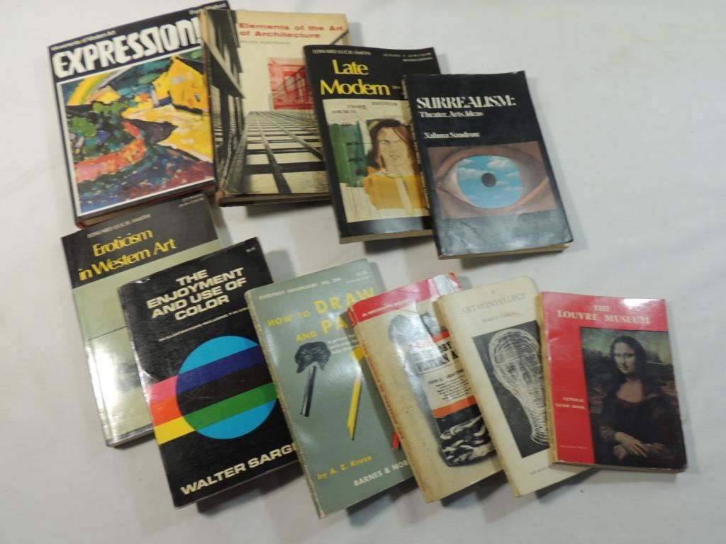 ASSORTED ART HISTORY BOOKS, MOVEMENTS OF ART, COLOR, ELEMENTS OF ART, WESTERN ART, LATE MODERN, EXPRESSIONISM. AS SHOWN SEE PHOTO FOR MORE DETAILS.
