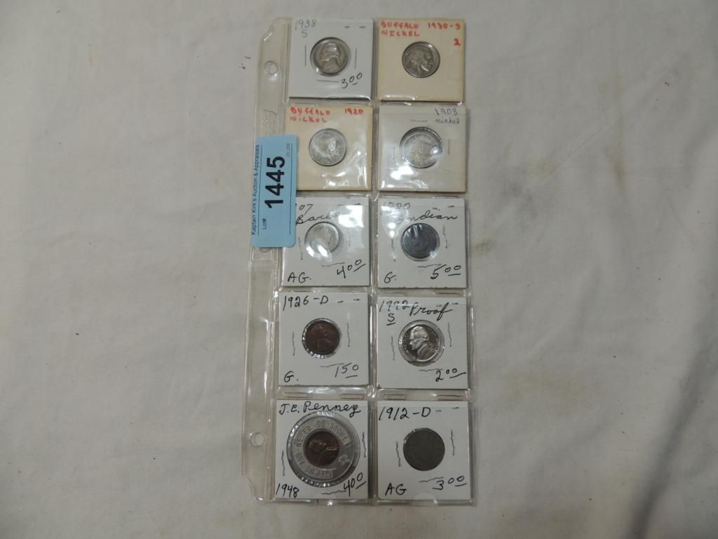BUFFALO NICKELS, BARBER DIME, INDIAN HEAD PENNY PROOF NICKEL AS SHOWN SEE PHOTO FOR MORE DETAILS.
