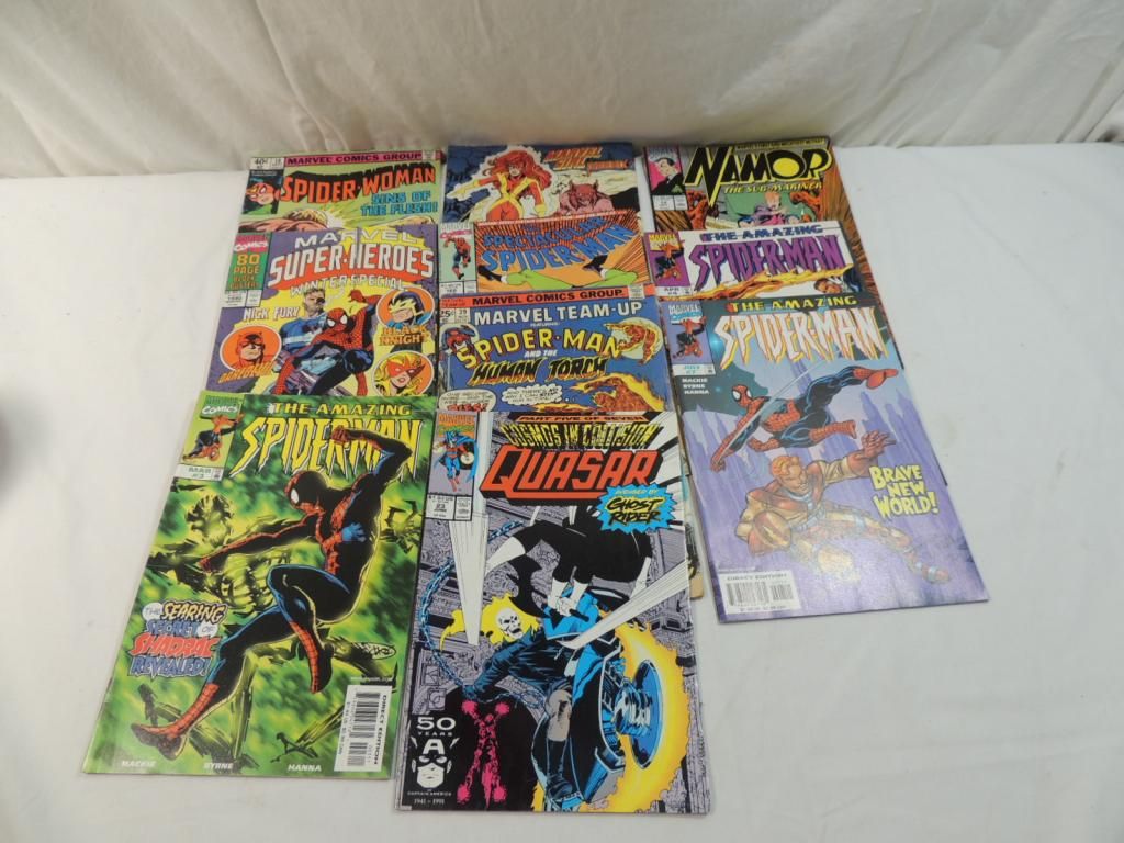 SPIDER MAN AND SPIDER WOMAN COMICS. COLOSSUS NAMOR QUASAR VINTAGE COMICS COLLECTIBLE GOOD CONDITION. AS SHOWN SEE PHOTO FOR MORE DETAILS.