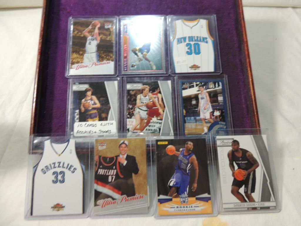 MIXED MAKERS & YEARS. ROOKIES AND STARS. BASKETBALL PLAYER CARDS. TRADING CARDS. GOOD CONDITION. IN PLASTIC SLEEVES AS SHOWN. SEE PHOTO FOR MORE DETAILS.