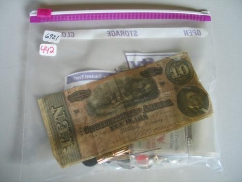 LOT, $10 CONFEDERATE NOTE, MISC. COINS & JEWELRY