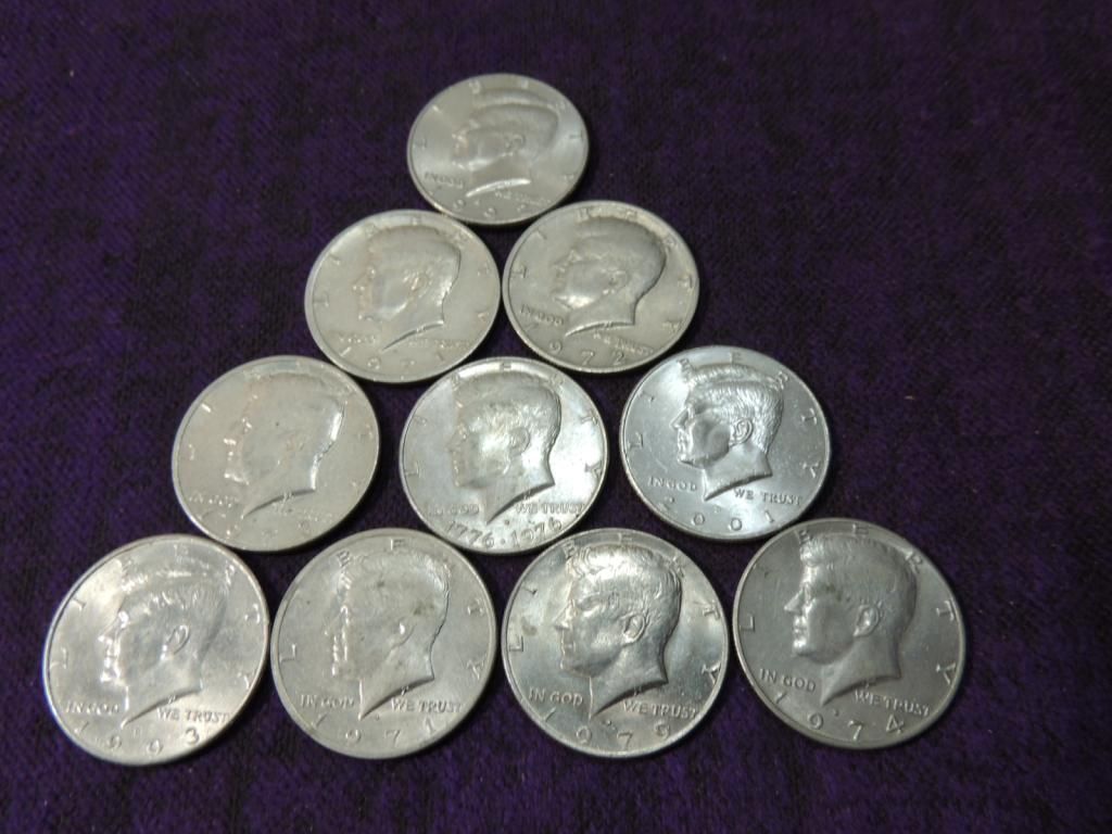 10 HALF DOLLAR COINS. UNITED STATES CURRENCY. MONEY COLLECTIBLE. AS SHOWN SEE PHOTO FOR MORE DETAILS.