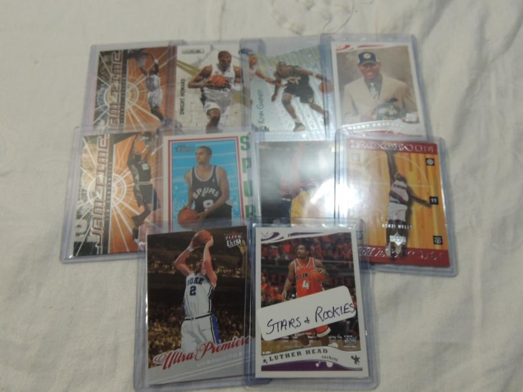 STARS & ROOKIES, LUTHER HEAD, JOSH MCROBERTS, BONZI WELLS, OMRI CASSPI, TONY PARKER, TIM DUNCAN, DANNY GARNGER, KEVIN GARNETT, DWIGHT HOWARD, ANFERNEE HARDAWAY BASKETBALL PLAYER CARDS. TRADING CARDS. COLLECTIBLE. BASKETBALL MEMORABILIA. GOOD CONDITION AS SHOWN. SEE PHOTO FOR MORE DETAILS.