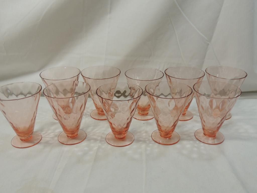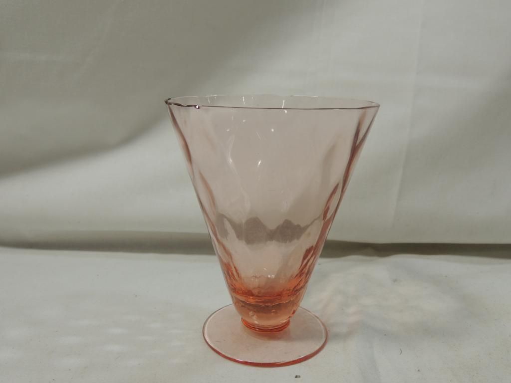 PINK DEPRESSION GLASS PARFAIT GLASSES. AS SHOWN SEE PHOTO FOR MORE DETAILS.
