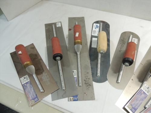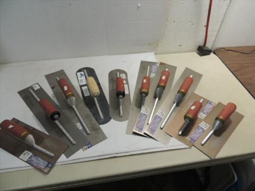 LOT 10 PROFESSIONAL CEMENT TROWLS 11" TO 20". AS SHOWN. VIEW PICTURE FOR DETAIL.