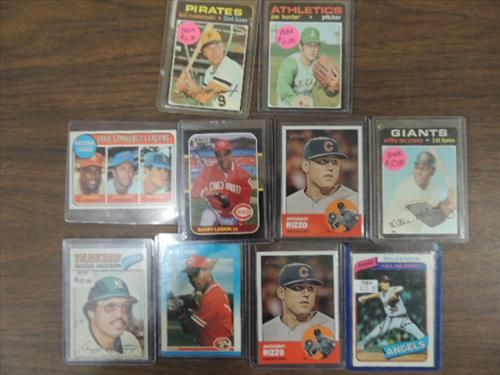 LOT 10 TOPPS BASEBALL PLAYER CARDS: 1971 TOPPS #45, 50, 110, 1986 DONRUSS #492, 2012 TOPPS #260, 1977 TOPPS #10, 1969 TOPPS #12, 1980 TOPPS #580, 1987 FLEER #204, 2012 TOPPS #260. AS SHOWN. VIEW PICTURE FOR DETAIL.