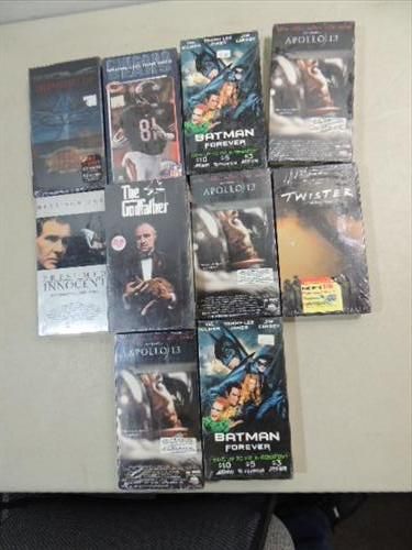 LOT 10 UNOPENED VHS MOVIES: APOLLO 13, GODFATHER TRIOLOGY, TWISTER, AND MORE. AS SHOWN. VIEW PICTURE FOR DETAIL.