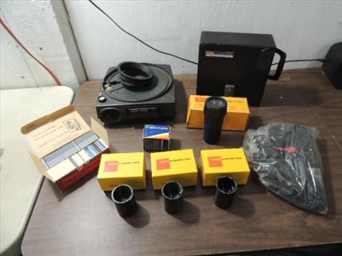 LOT 10 VINTAGE 35MM SLIDE PROJECTOR, DISSOLVE CONTROLLER, LENSES AND MORE. AS SHOWN. VIEW PICTURE FOR DETAIL.