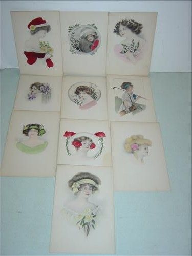 LOT OF 10 VINTAGE POSTCARDS INCLUDING: WOMEN. AS SHOWN. VIEW PICTURE FOR DETAIL.